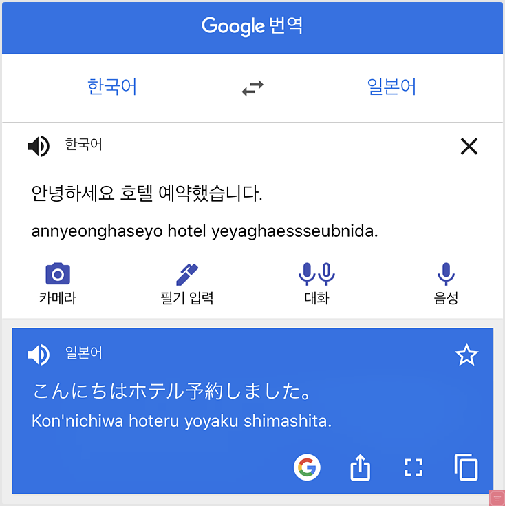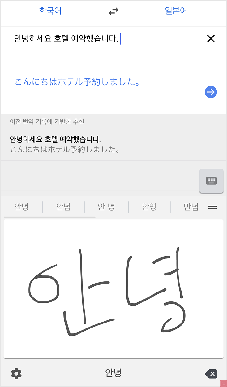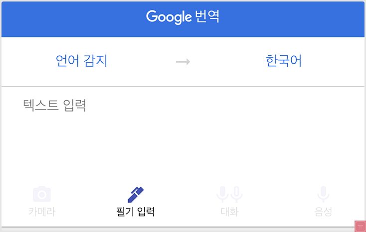 구글 번역기는 사진 번역 뿐만 아니라 단어 뿐만 아니라 내가 궁금한 단어나 문장을 직접 입력해서 번역 하는 것도 가능한데요. 필기 입력도 가능해서 해외여행시 아주 유용하게 사용할 수 있습니다.
